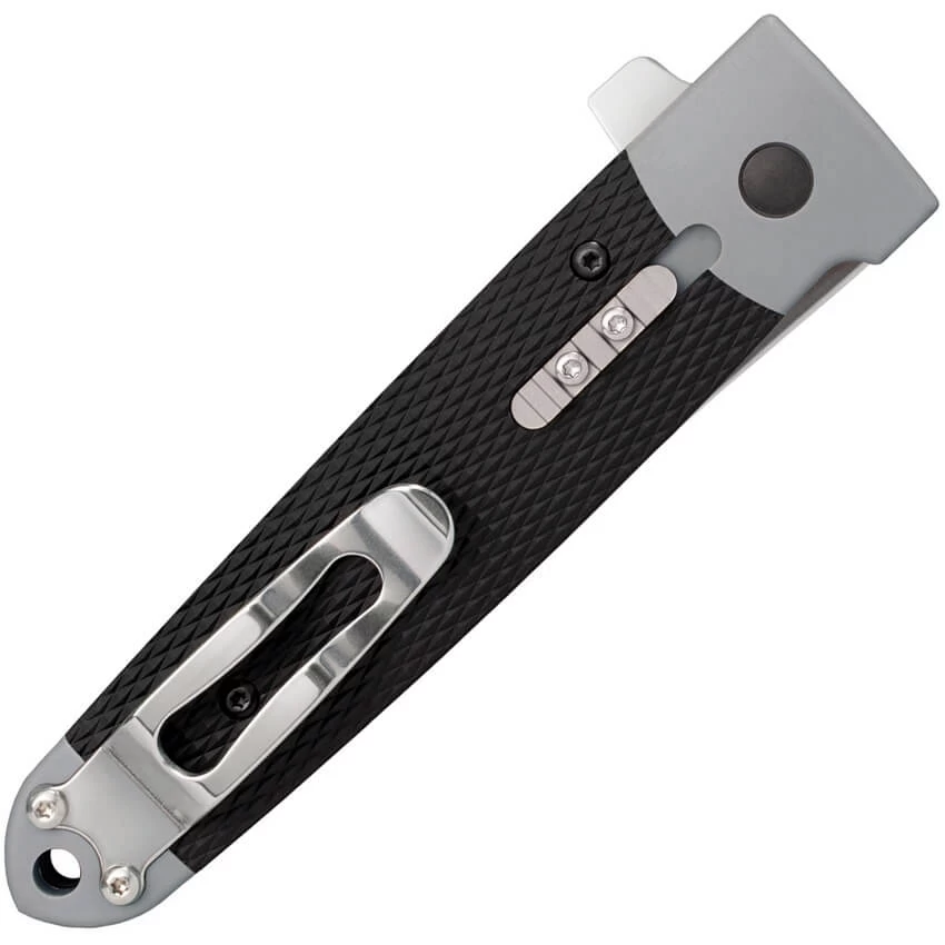 Couteau Cold Steel Oyabun Leaf Spring. 12,07cm fermé. Lame tanto de 8,89cm en acier inoxydable 4034 finition satinée. Ouverture par flipper. Manche Kray-Ex quadrillé noir. Mitres inoxydable. Cran liner lock avec double sécurité (bouton poussoir). Clip de poche. Trou pour une lanière. boîte.