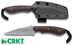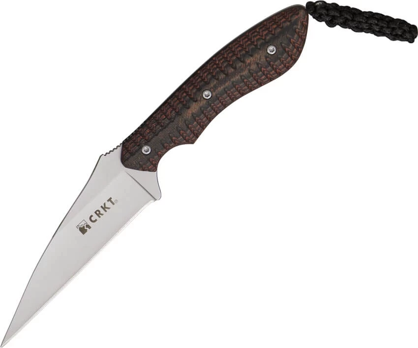 CRKT Folts S.P.E.W. Couteau de cou avec lame wharncliffe de 7.7cm en acier 5CR15Mov (56-57 HRC) et plaquettes en G10 usiné. Etui en Zytel. Lacet.