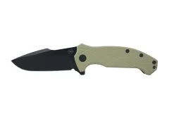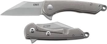 Lame de forme Wharncliffe de 5,2cm en acier inox 8Cr13Mov finition stonewash, ouverture flipper. Manche en titane finition stonewash avec cran frame lock. Longueur totale 13.3cm. Design Robert Carter.