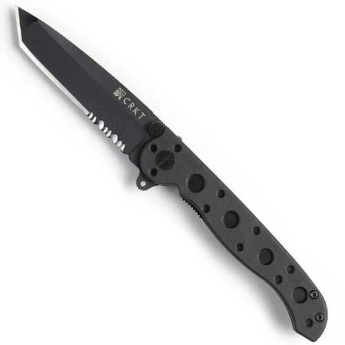 Lame noire semi-dentée de 7.6cm en acier Aus-4 (HRC 55-57) avec ouverture ambidextre. Manche en Zytel. Liner lock avec double sécurité. Clip. Longueur totale 18.1cm.Un des best-sellers de la marque.