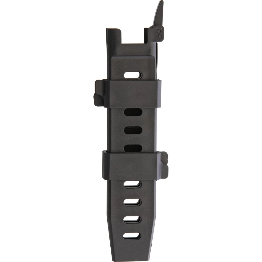 Couteau Extrema ratio Mamba black avec lame de style tanto de 11.6cm en acier inoxydable Bohler N690 avec coating noir. Poignée vissée en Forprene de couleur noire. Ful Tang. Brise verre. Gaine de ceinture Tan Kydex avec bouton de rétention. Longueur totale 23.5cm. Livré en boîte.