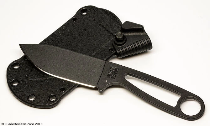 Becker Eskabar 14 avec lame drop point de 8.3cm en acier carbone 1095 Cro-Van avec coating noir. Etui en nylon renforcé à la fibre de verre avec nouvel arrêt pivotant (voir photo9. Longueur totale 17.8cm. Made in USA. Couteau né de la fusion du ESEE Izula et du Becker Necker. Paracorde pour port divers.