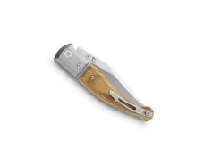 Couteau Lion Steel Gitano. Lame de cm acier Niolox satiné à cran carré« slip joint », manche de 11 cm avec plaquettes en bois d’olivier, mitres en titanium 6AL4V. clip. Longueur totale 19.3cm.